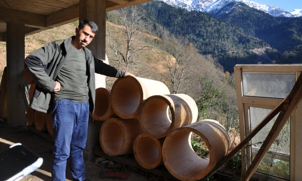 | Kutluata makes traditional hives of lindenwood in his workshop above the village of Yaylacılar. Photograph: Gökçe Saraçoğlu |